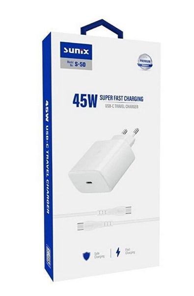 Sunix S-50 45W USB-C Type-C Beyaz Hızlı Şarj Aleti Seti