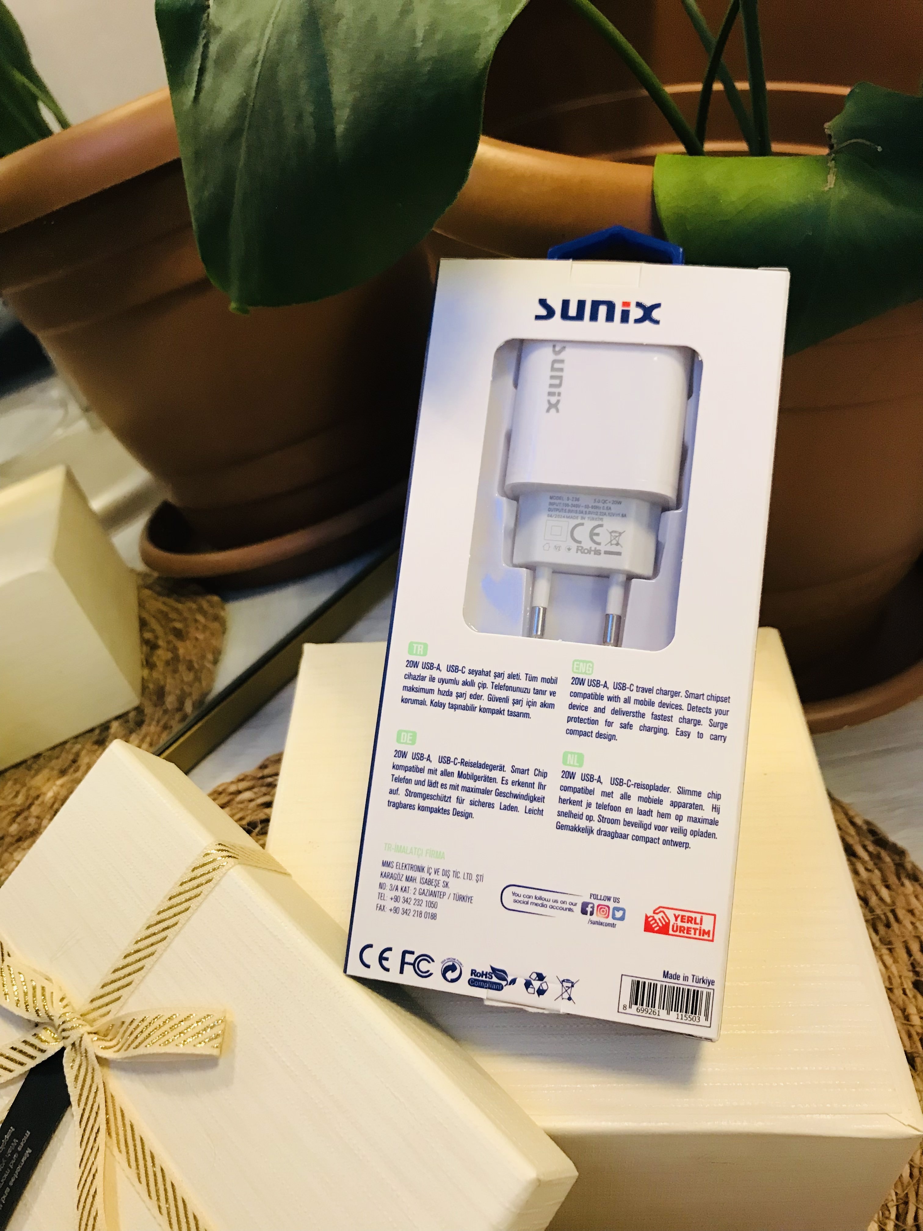 Sunix S236 Çift Çıkışlı Usb-S ve Type-C Sadece Başlık PD20W Ev Şarj Aleti