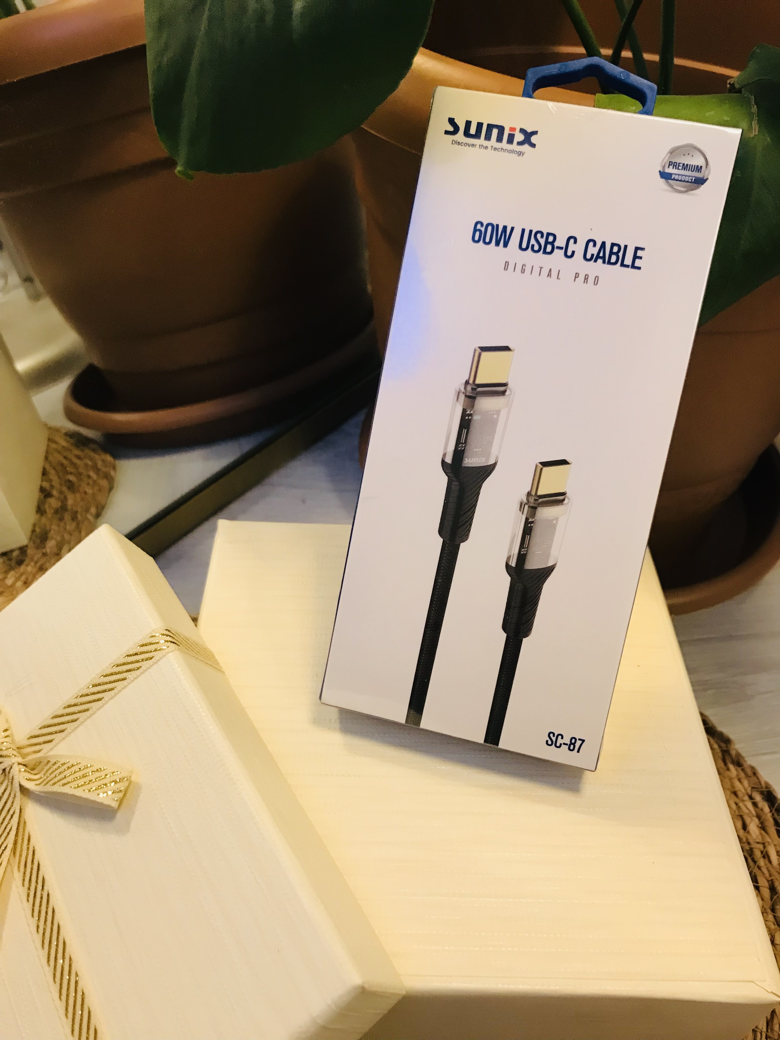 Sunix SC-87 60W USB-C Siyah Şarj ve Data Kablosu